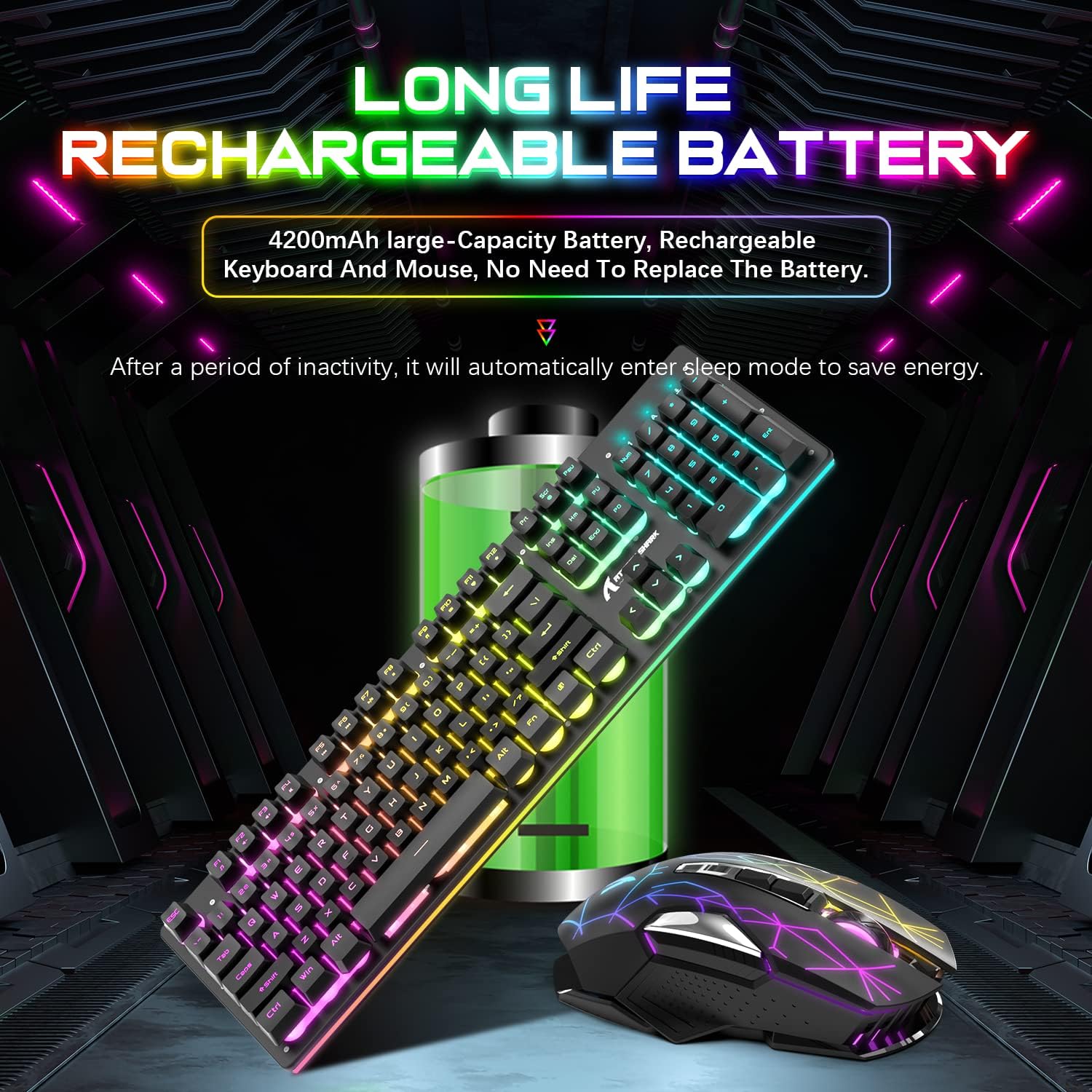 - 4200mAh Rechargeable Battery: Long-lasting power with 3200mAh in the keyboard and 1000mAh in the mouse. Full charge in just 4 hours, no battery replacements needed.